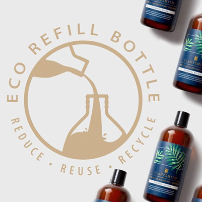 Sustainability is important to us. Our glass bottles are reusable and recyclable along with our new Eco Refill Bottle made from a plant-based polymer.